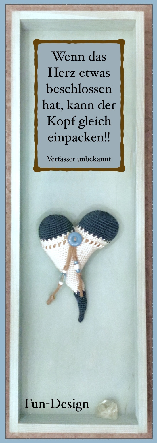 Gerlinde ist ein wenig krumm und schief, und damit äußerst charmant. Das Herz ist schnell gehäkelt, vielleicht hast du ja sogar etwas passende Restwolle in deinem Vorrat.