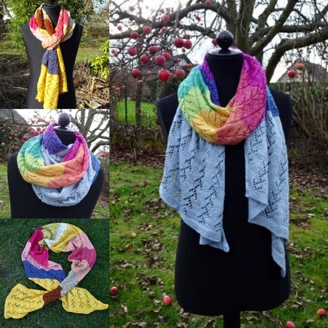Beim Tamburin Shawl könnt ihr jede Menge Wollreste verwerten, da das Muster immer weiter durchgestrickt  werden kann.