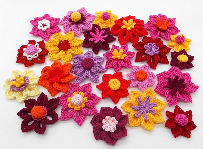 Dekoketten. Die Motive sind beliebig untereinander kombinierbar, auch kannst du z. B. eine Kette nur mit Herzen oder nur mit Blüten häkeln. Die Kette wird in einem "Rutsch" gehäkelt, geht superschnell und du benötigst lediglich ein paar Wollreste.