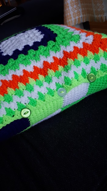 Wow Andrea, das sieht sehr gut aus! Sehr sauber gearbeitet und auch so frische Farben. Ich glaube, davon machst Du noch mehr oder? Mir gefällt an der Technik auch, dass man direkt sieht, wie man vorankommt - Kästchen für Kästchen. Und beide Kissenseiten anders, gefällt mir auch, dann kannst Du je nachTagesform variieren. Die Nicht-Entralac-Seite gefällt mir auch gut. Ich könnte mich kaum entscheiden. Obwohl ich vermutlich heute die mit dem Rot vorne hätte, mir ist bei dem trüben Grau draußen mehr nach Farbe.