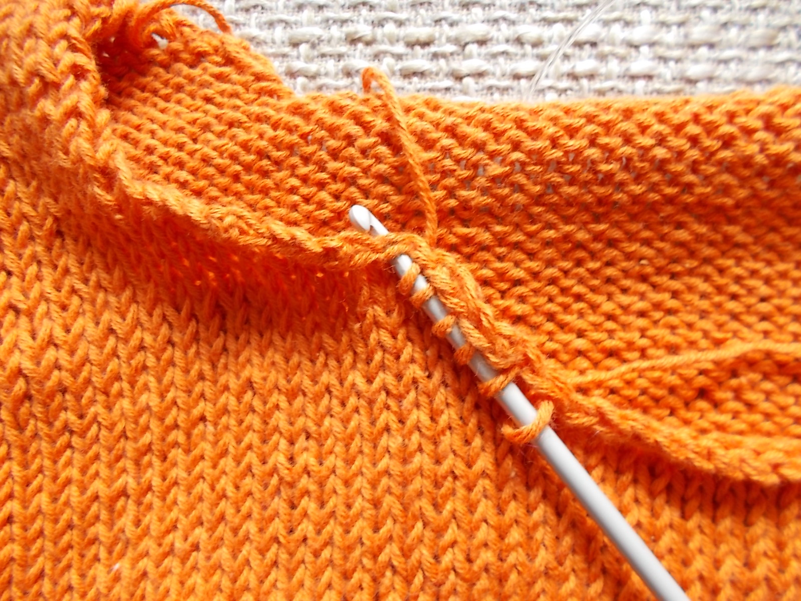 So sieht das an diesem Beispiel aus - hier werden die Maschen am Hals aufgenommen.