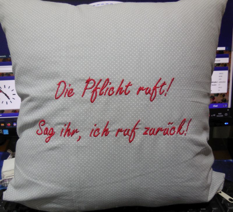 diesen Spruch sah ich gestern und dachte den musste digitalisieren, heute auf ein Kissen gestickt