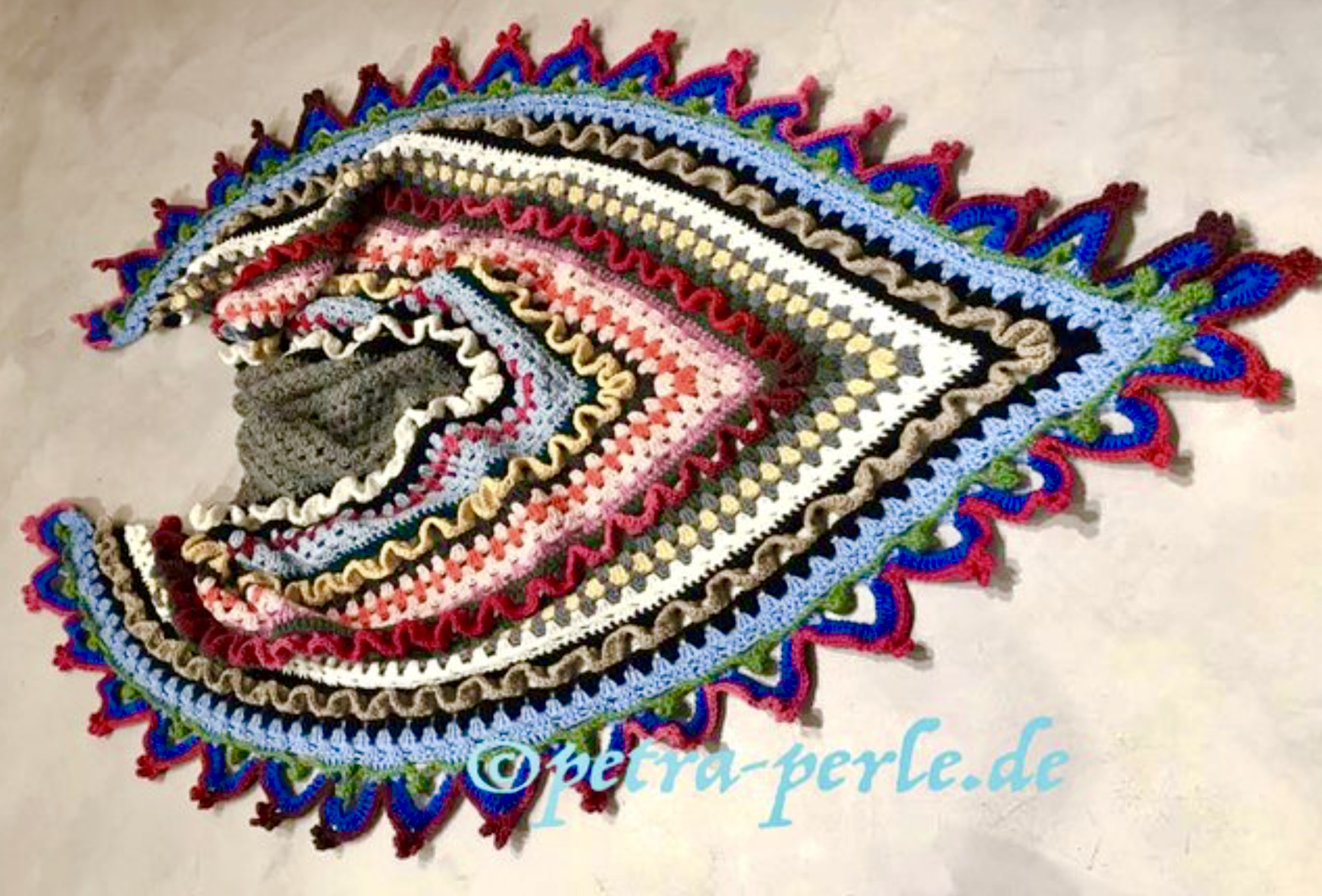 Gehäkelt mit der Doppelmasche und mit festen Maschen.