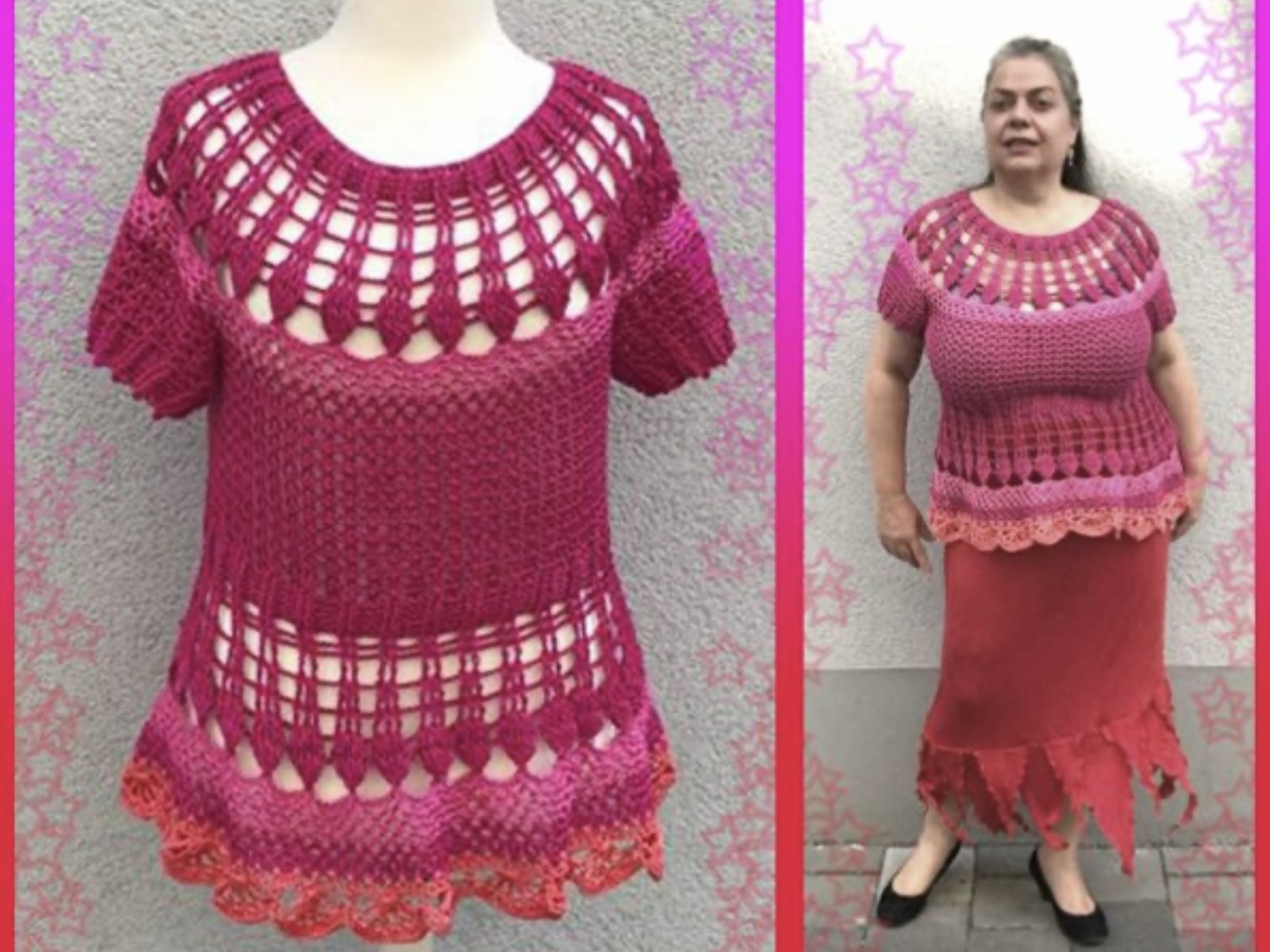 1) Tunika "Mayla" - zart und leicht wirkt diese Tunika und besteht aus einem wirkungsvollem aber sehr einfach zu häkelndem Lacemuster.
