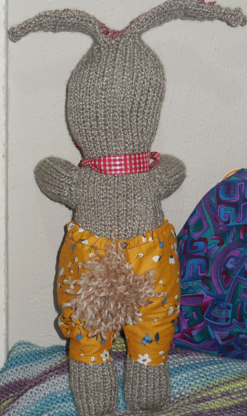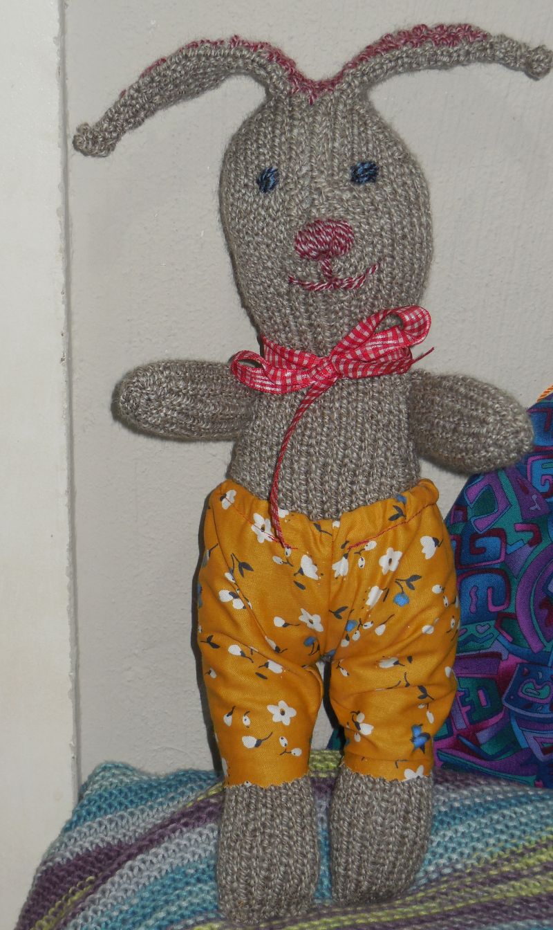 hab mich gestern und heute auch wiedermal kreativ ausgetobt und einen hasen gestrickt, so wie es mir in den Kopf kam