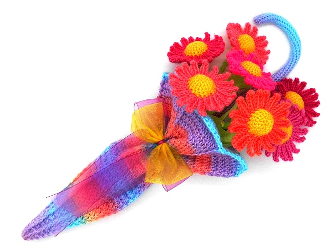 Der fröhlich bunte Blumenstrauß im Regenschirm versprüht gute Laune und Du kannst ihn als Tür-Deko oder Zimmer-Deko verwenden.
