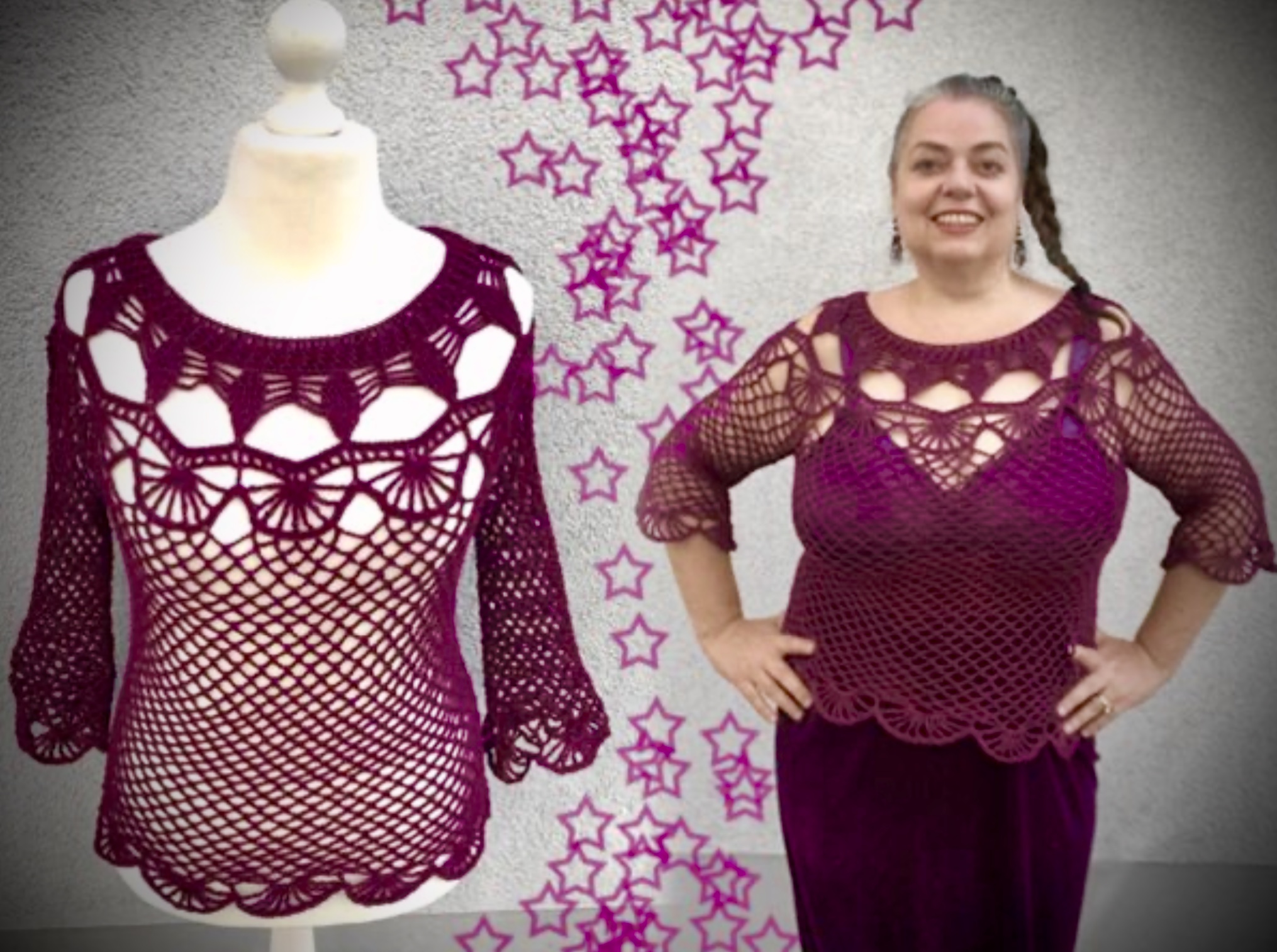 Verwendete Maschen: Kettmaschen, Luftmaschen, feste Maschen, einfache und mehrfache Stäbchen