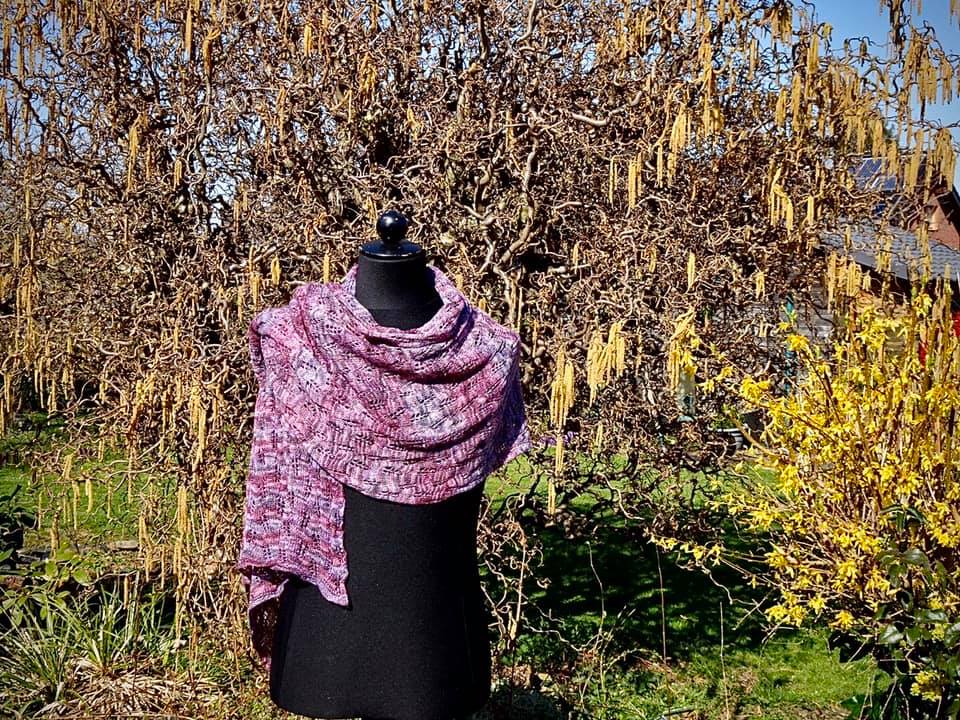 Egal ob Schal, Stola oder Loop - er sieht in jeder Variante gut aus. Gestrickt aus feinem Lacegarn mit Farbverlauf. Die Länge und Breite kann ganz einfach auch selbst bestimmt werden. Das Lochmuster lässt sich einfach erweitern.