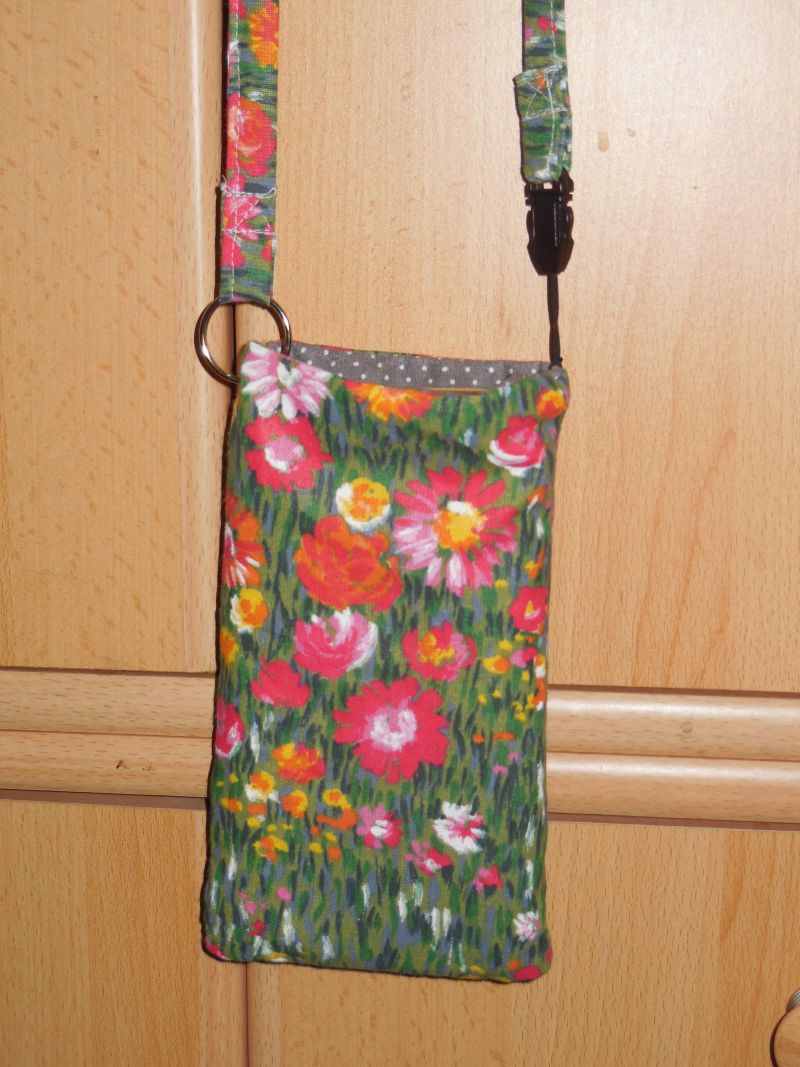 ich hab mir ein Täschchen für mein Handy genäht, als Träger einen langen Schuhbändel verwendet, denn Stoffreste hab ich immer liegen um sowas zu nähen, ist ja schon das zweite Umhängetäschle