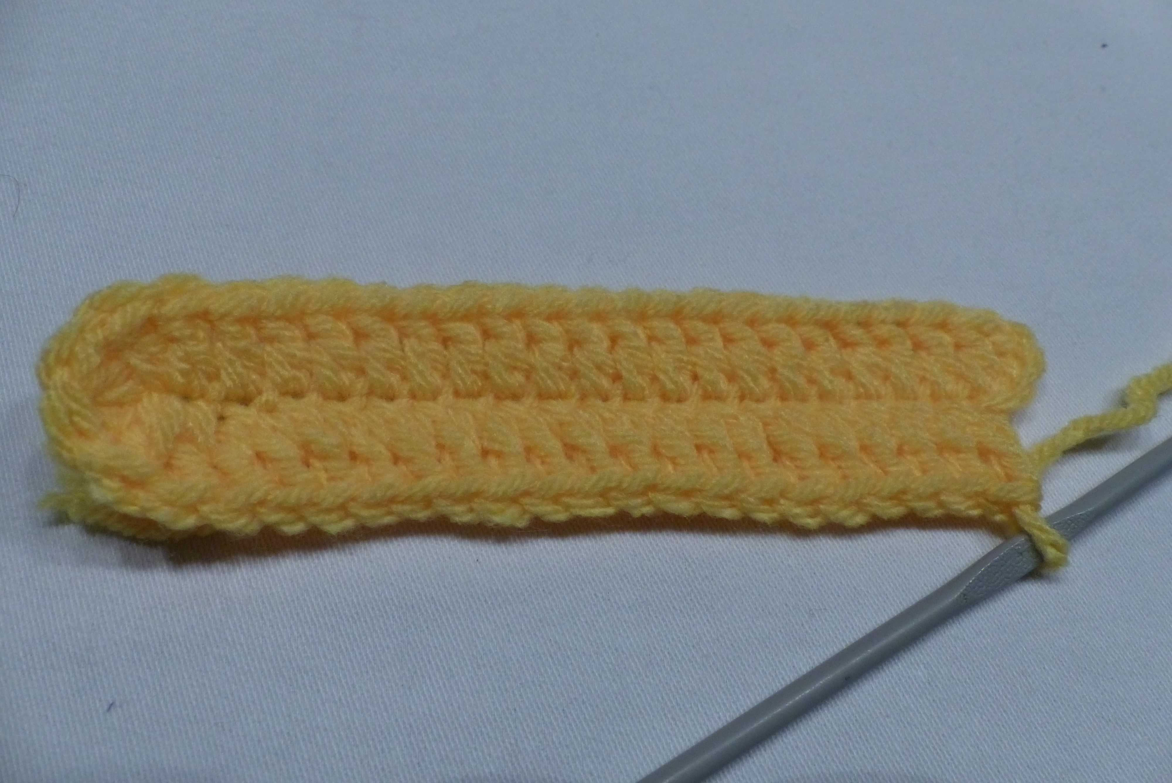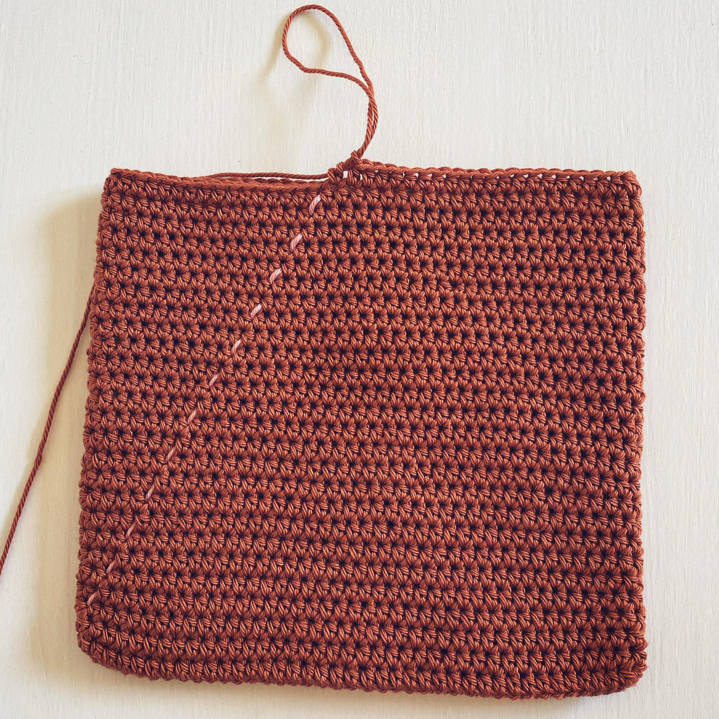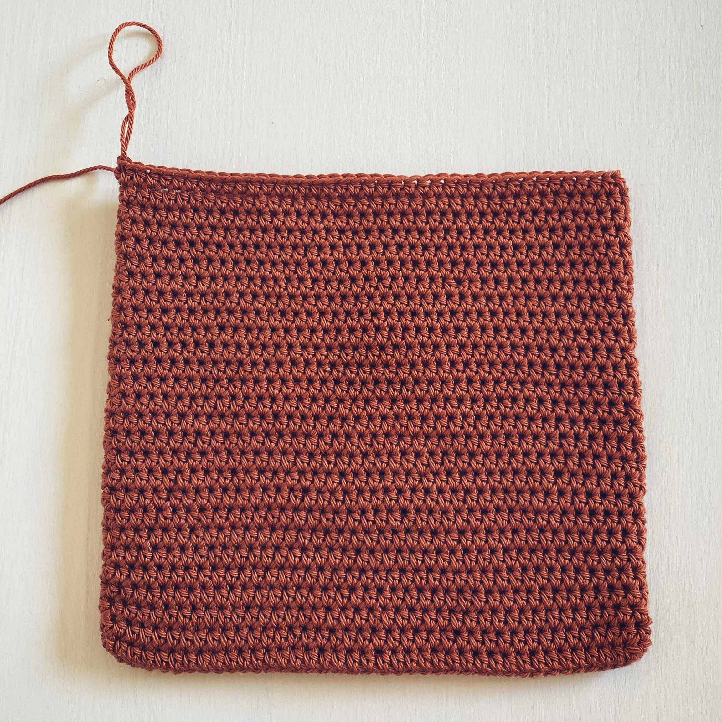 Runde 2 - 26 immer 80 halbe Stäbchen im Kreis, so ist deine Häkelarbeit unten geschlossen und es sieht aus wie eine Tüte.