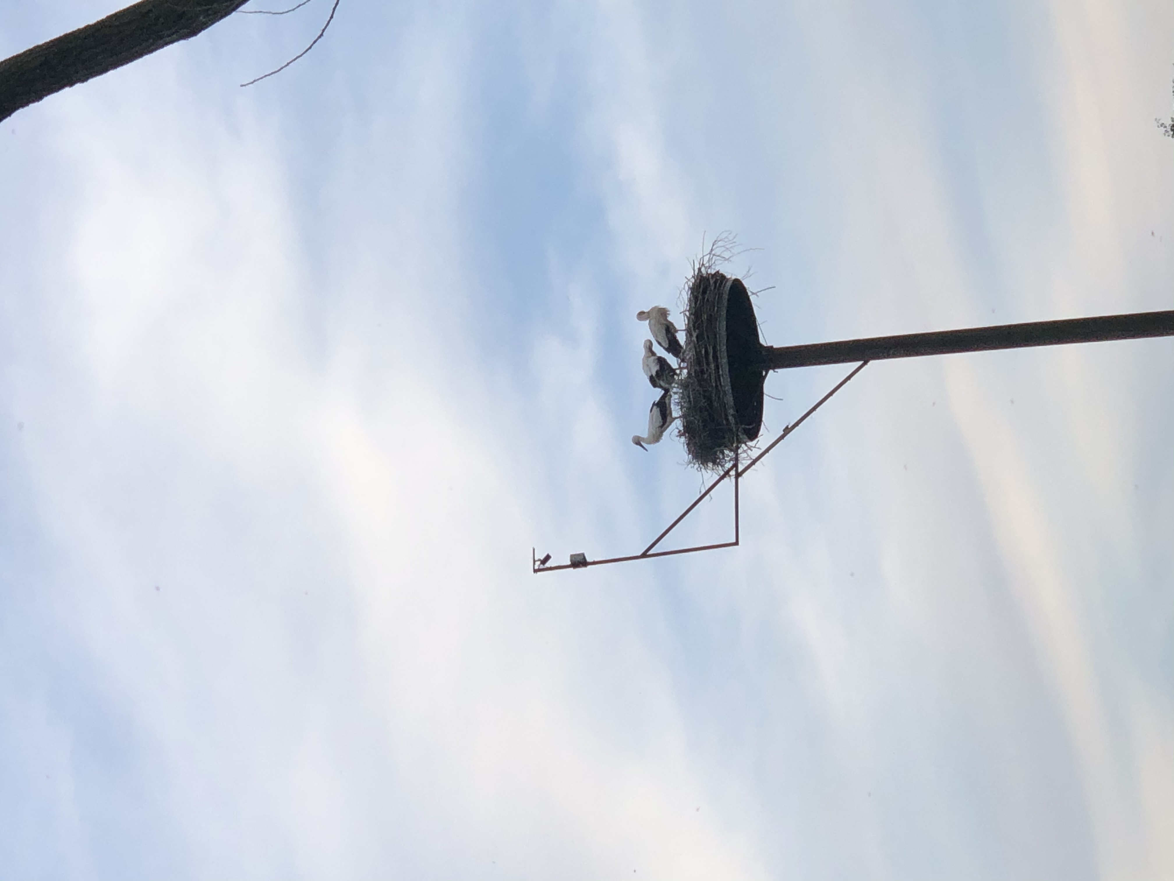 bei uns auf der Arbeit ist ein Storchennest. Gestern saßen die drei Jungtiere Abends so brav im Nest