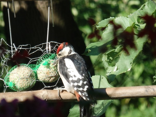 Ich habe Tränen gelacht, als ich kürzlich sah, wie eine Spatzenbande versuchte an die Meisenknödel zu kommen, die aber grad vom Specht verkostet wurden. Der Specht hat sie der Reihe nach weggehackt (die hatten bestimmt Kopfschmerzen).