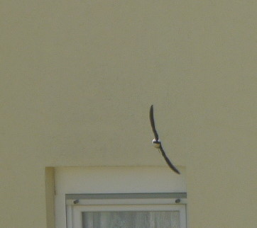 Bei uns sind jedes Jahr Schwalben, die zwischen den Häusern umher fliegen und ihre Nester unter den Dächern haben.