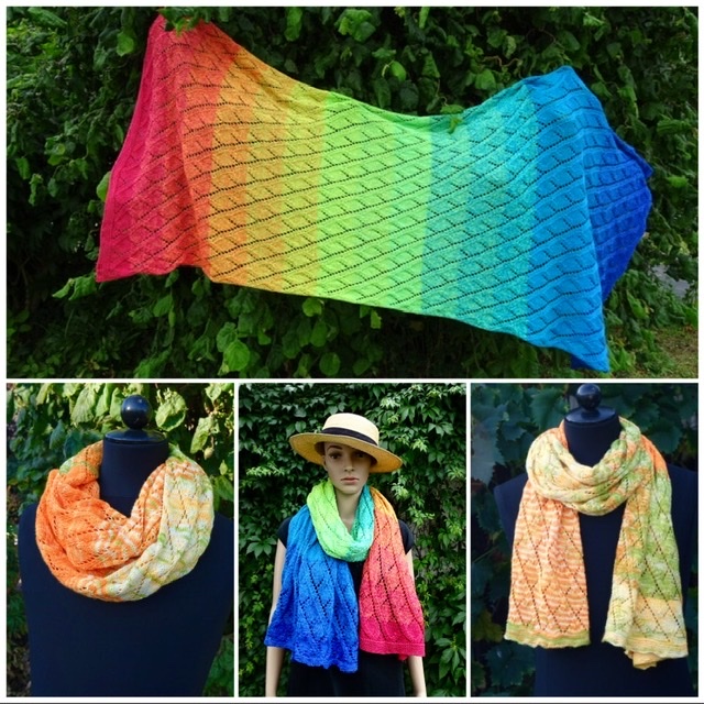 Der Pullover kann in den Größen 36 - 44 gestrickt werden. Die einzelnen Angaben für die verschiedenen Größen werden mit unterschiedlichen Farben gekennzeichnet. Außerdem enthält die Anleitung neben einem Schnittschema auch Maßangaben und eine Maschenprobe, so dass man den Pullover auch mit dickerer oder dünnerer Wolle stricken kann.