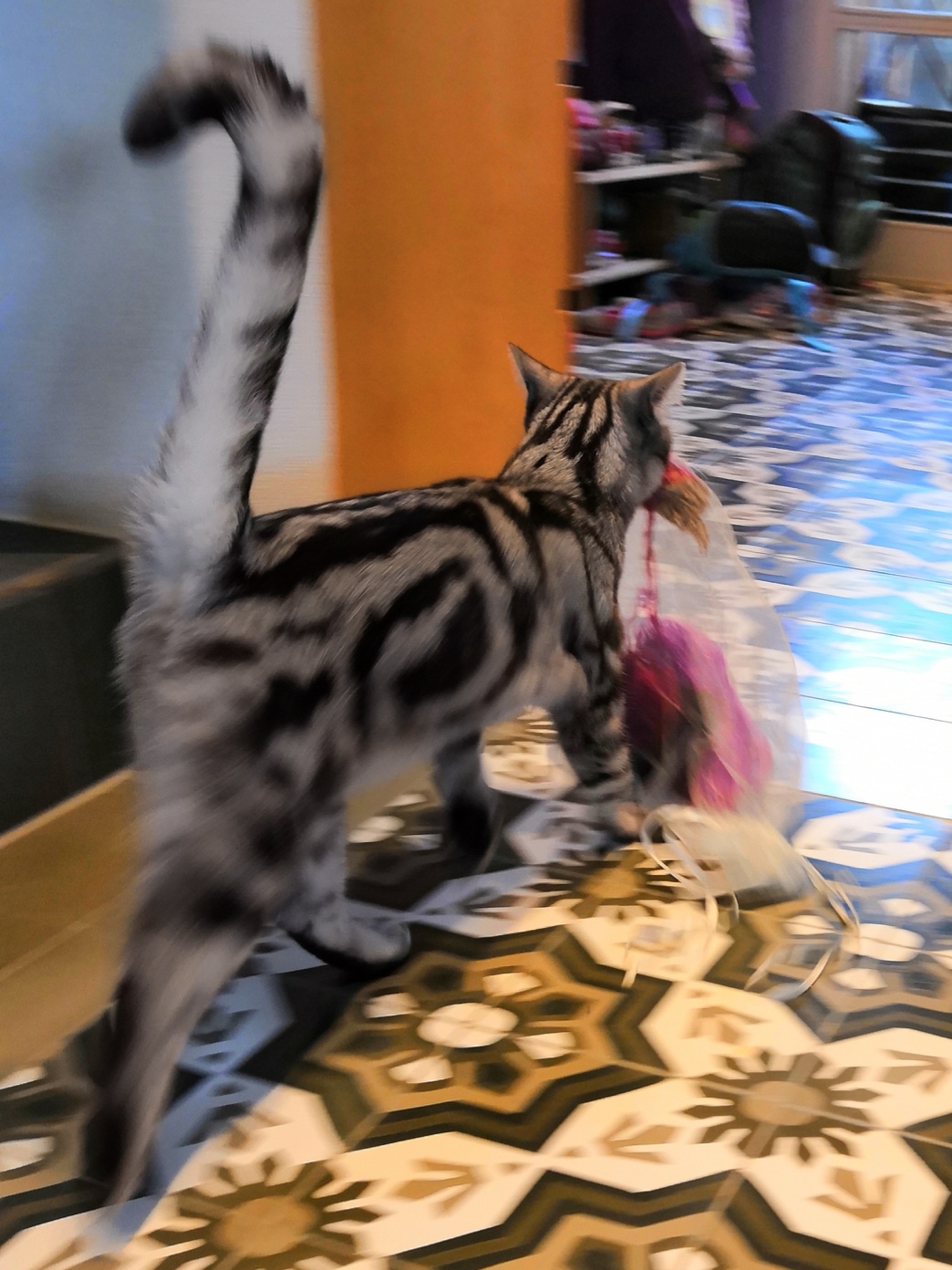 Neee alles was irgendwie in irgendeiner Art nach Seil aussieht. Aber vielleicht liegt es auch daran, dass sie ihre ersten Wochen zusammen mit einer Katze verbracht hat. Schon auf einem Bild dass die Besitzerin der Mama eingestellt hatte, war ein Wollfaden im Bild 😂