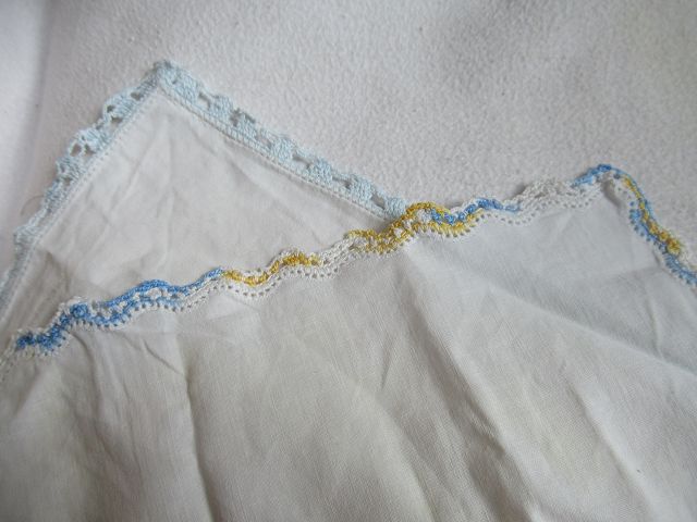 Bild, die oberen TaTue. Heute geht das nicht mehr so mit den duennen Nadeln. Zum Benutzen waren diese Taschentuecher viel zu schade.