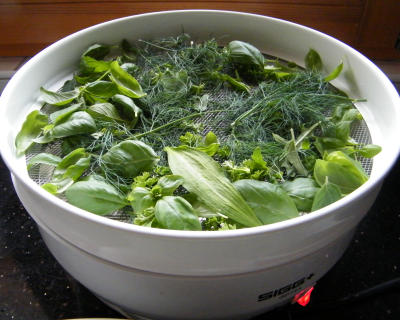 2. Kräuter im Dörrapparat oder an der Luft trocknen lassen