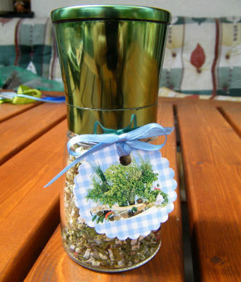 Das ist wirklich eine gute Idee, kann ich bestätigen. Denn meine Nachbarin hat mich jetzt auch drauf gebracht. Sie ist grade am Abfüllen für Geschenke. Nur hatte sie keinen Pfeffer dabei. Der gefällt mir jetzt gut da drin.
