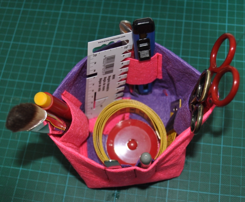 für die Werkzeuge die ich ständig an der Nähmaschine brauche, bin immer am suchen wo haste denn die Scher hingelegt, wo liegt zum Teufel wieder der >Trenner der Näherin bester Freund :-) ;-) jetzt ist alles in einem auffälligem Utensilo und wird gleich gesehen. Der *Schminkpinsel* ist ideal um die Maschine zu säubern, fein und komme da wo es nötig ist gut hin