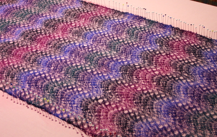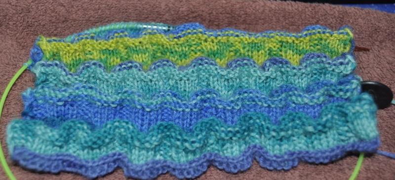 Es gibt verschiedene Wellenmuster. Man kann sie häkeln oder stricken. Verwendet werden normale Maschen. An einigen Stellen werden in regelmäßigen Abständen Maschen zusammengestrickt oder gehäkelt und an anderen Stellen welche zugenommen. Im Laufe der Handarbeit entstehen optisch Wellen. Besonders gut zur Geltung kommen die Wellen, wenn man Garne mit Farbverlauf verwendet. Hier ein Beispiel für ein gestricktes Wellenmuster (Foto ist von mir).