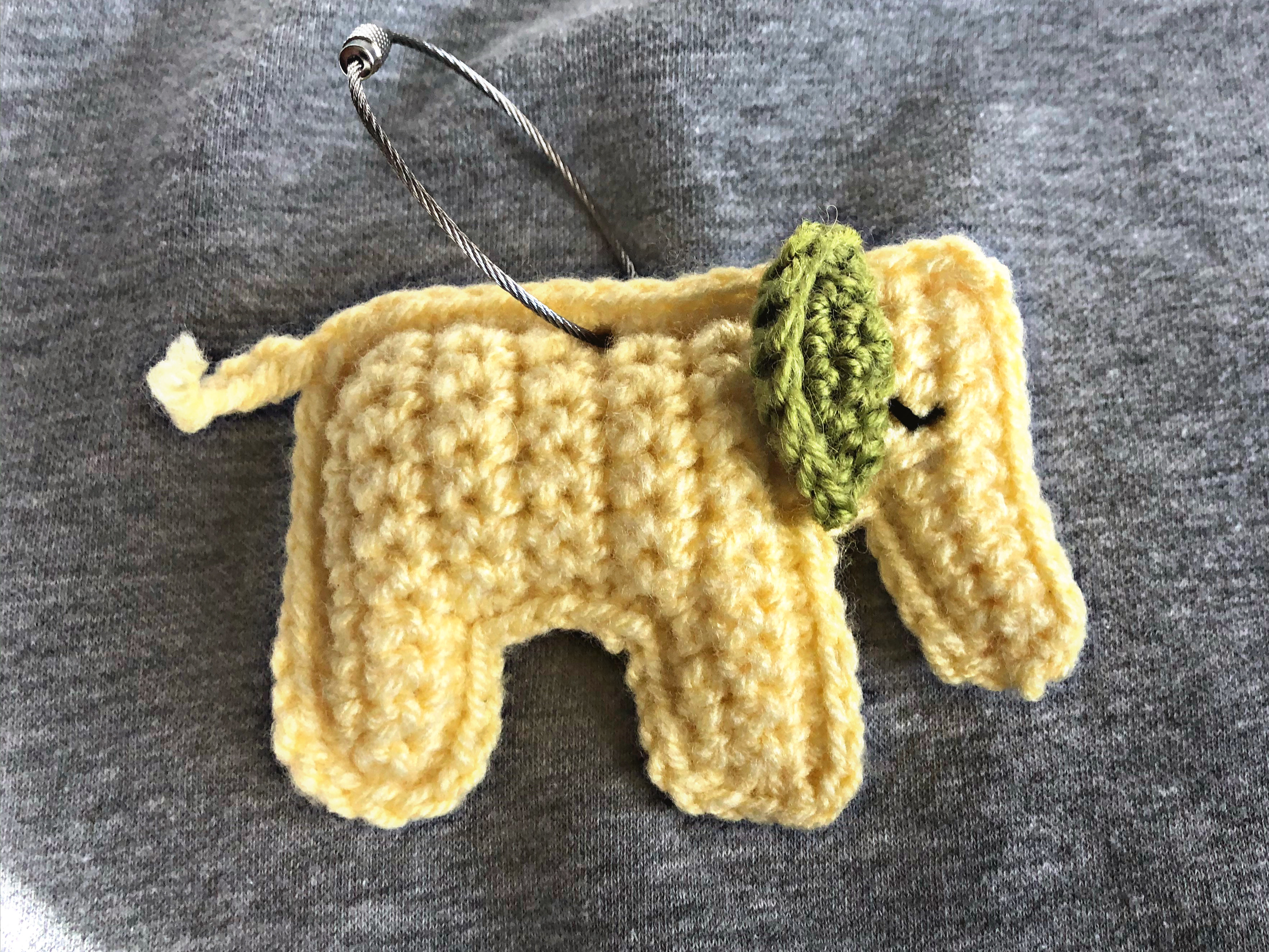 Die Taschenbaumler sind flott mit ein paar bunten Wollresten gehäkelt und somit auch ein hübsches Last Minute Geschenk oder Mitbringsel, nicht nur für Elefantenfans.