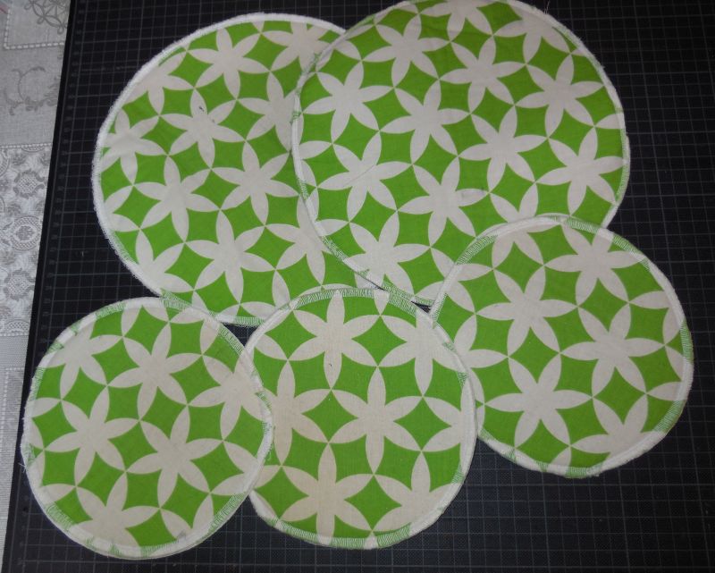 da habe ich einen tollen Tip für euch, ihr habt doch bestimmt alle ein Bügelbrett und wechselt da von Zeit zu Zeit den Überzug. Den *verbrauchten nicht wegwerfen, da kann man sich tolle hitzebeständige Untersetzer von nähen, mal rund mal quadratisch, ich hab mir runde gemacht, in groß und klein. Als Maß habe ich mir einen Topfdeckel genommen.