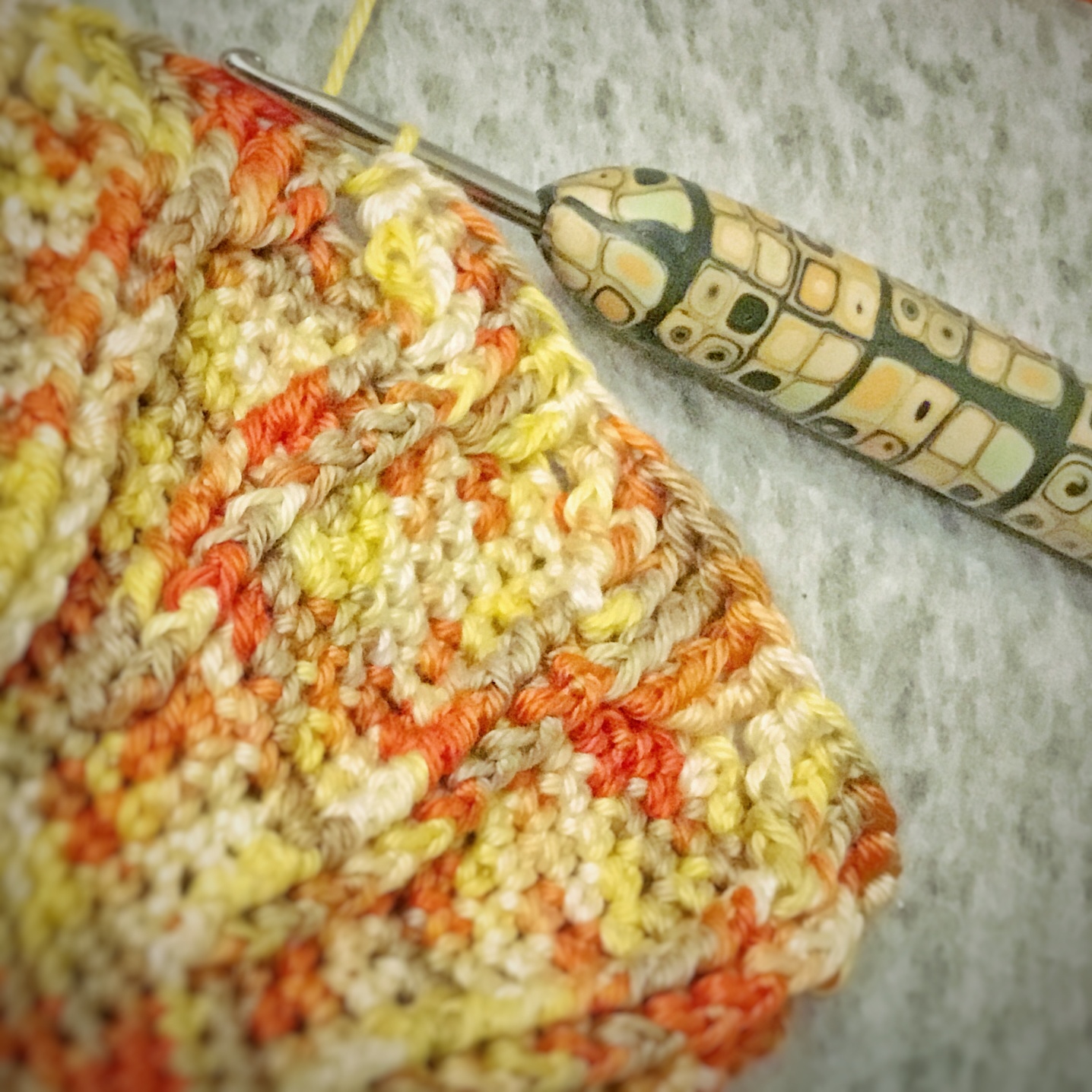 Wenn mir der Griff bricht, habe ich ihn schon mal mit Fimo ummantelt. Damit lässt sich dann super häkeln.