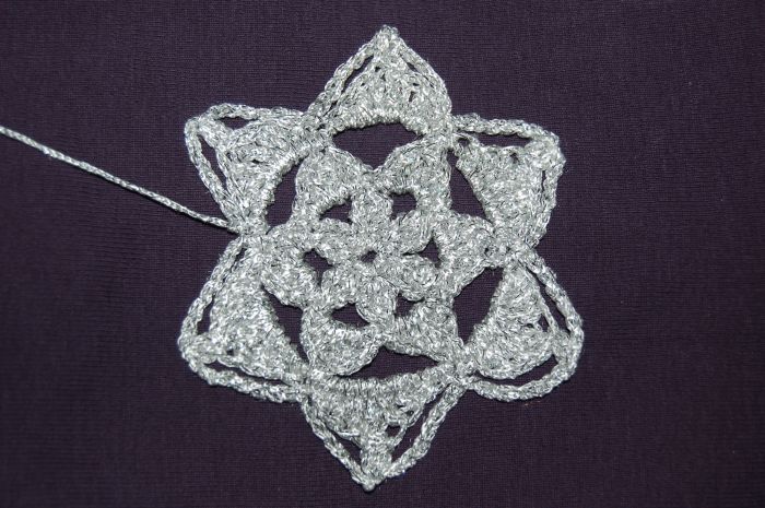 6) Die Sterne sind schnell gehäkelt und sehr dekorativ, lass sie am Weihnachtsbaum oder Adventskranz funkeln.