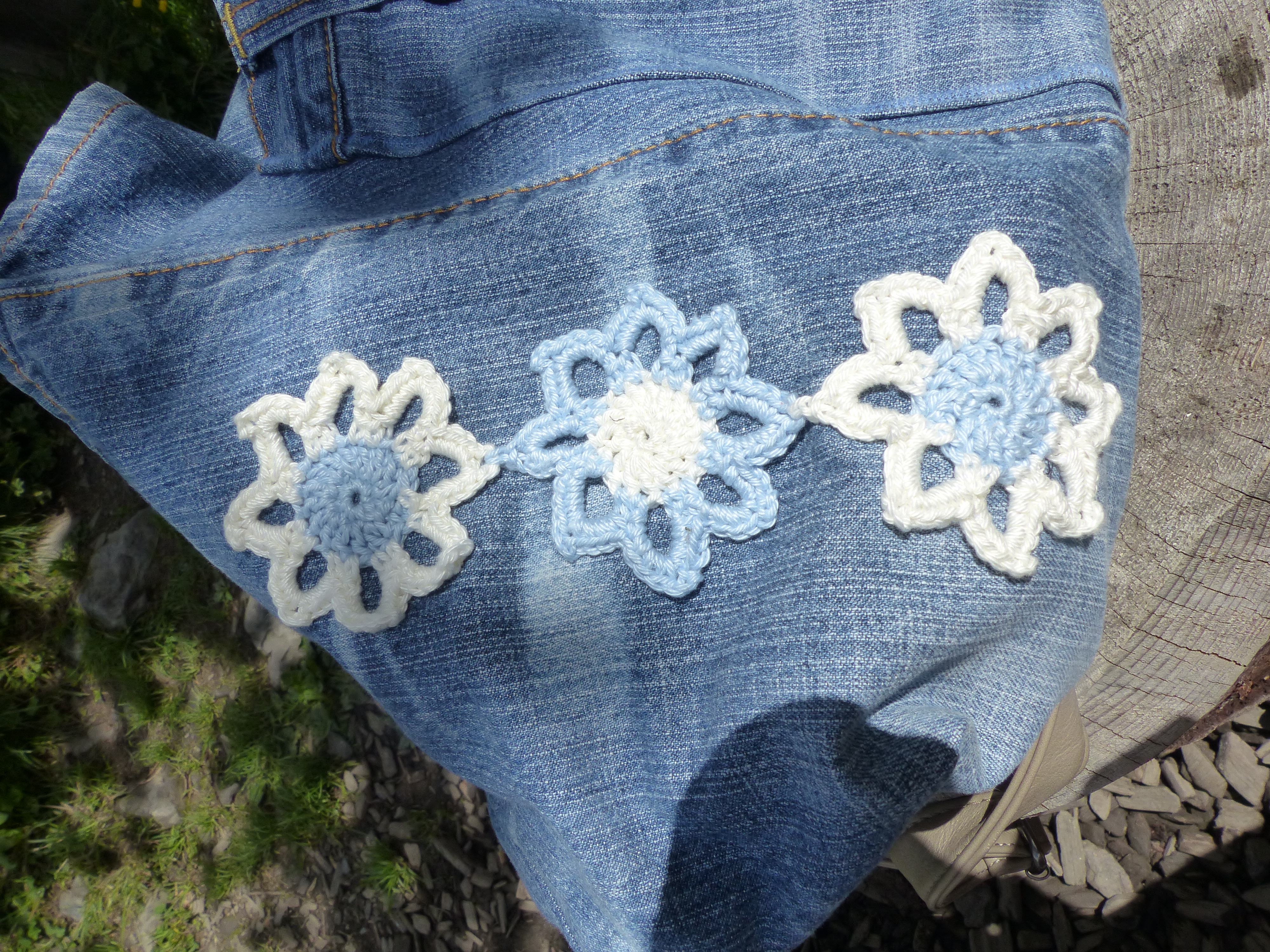 Meine neue Tasche habe ich damit verziert, und für Windlichter möchte ich noch welche machen. Und Glasuntersetzer zum Verschenken habe ich auch noch auf dem Plan.