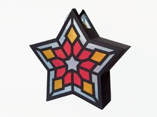 Die Laterne ist ca. 28 x 26,5 x 9 cm groß und aus Fotokarton sowie Transparentpapier gefertigt. Es gibt hier zwar viel auszuschneiden, da aber alle Linien kurz und gerade sind, wird die Arbeit auch einem Bastelanfänger leicht von der Hand gehen.