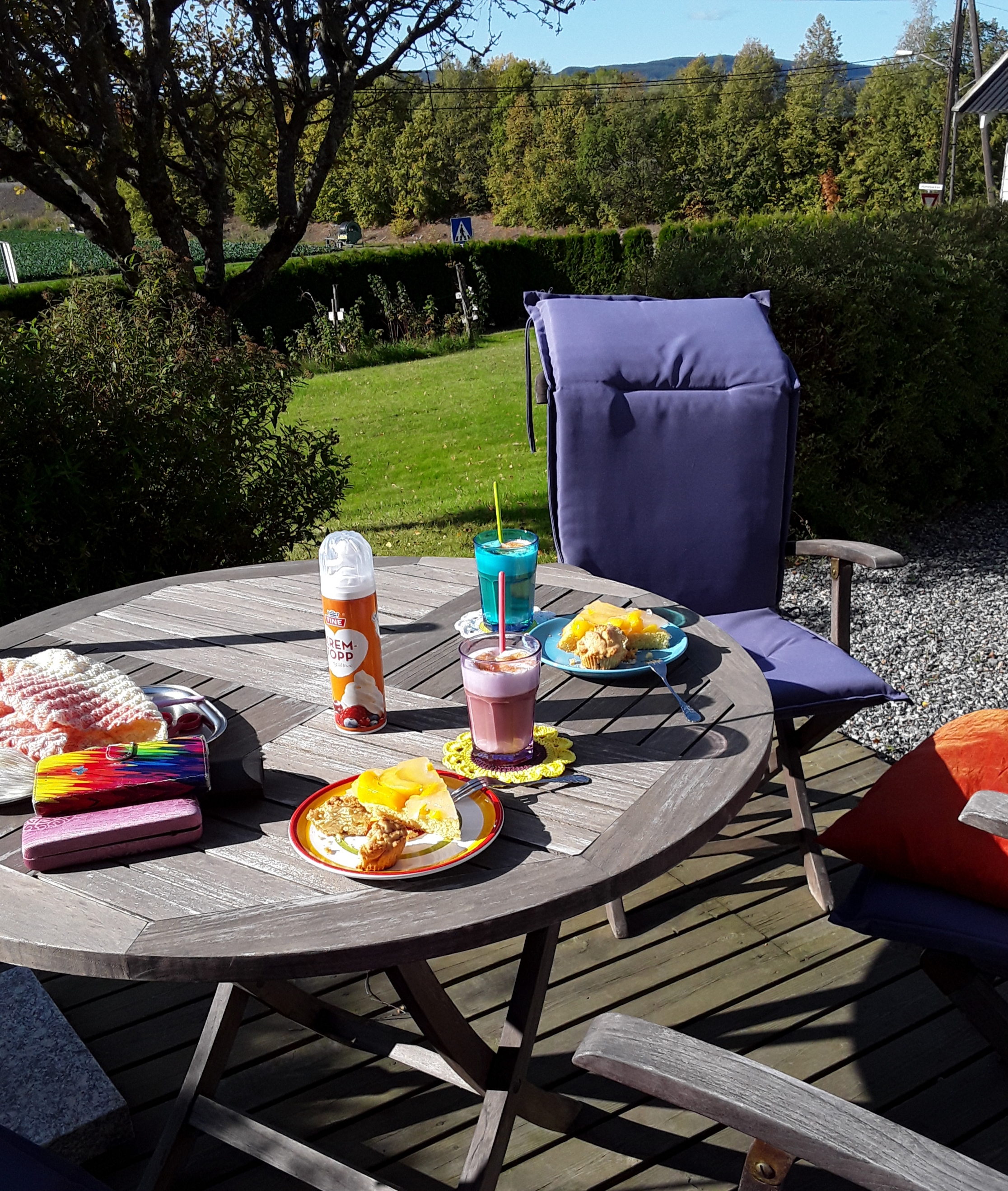Oh Gott und es stehen 2 Gedecke da. Lieb von Dir, dass Du an mich gedacht hast. Und farblich alles abgestimmt. Bei Dir wäre ich schon gern zu Gast. Und dann noch leckere Obsttorte ... ach Andrea, Du machst es Dir wirklich schön.