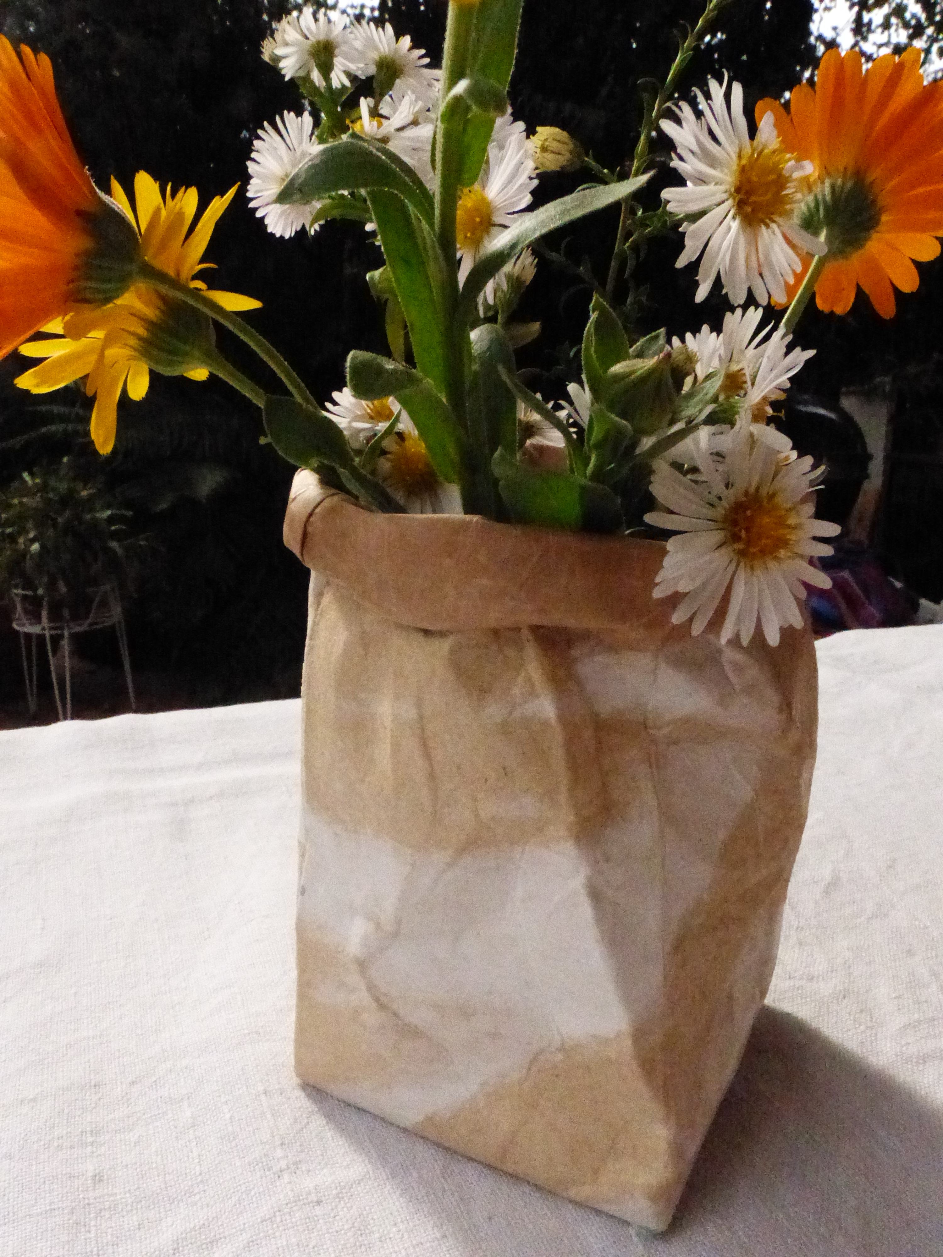 Oben den Verschluss abschneiden. Dann die Schicht mit Werbung abziehen. Wenn man möchte, kann man den Behälter anmalen, ich habe ihn natur gelassen. Dann von oben umschlagen und das ganze verdrücken.