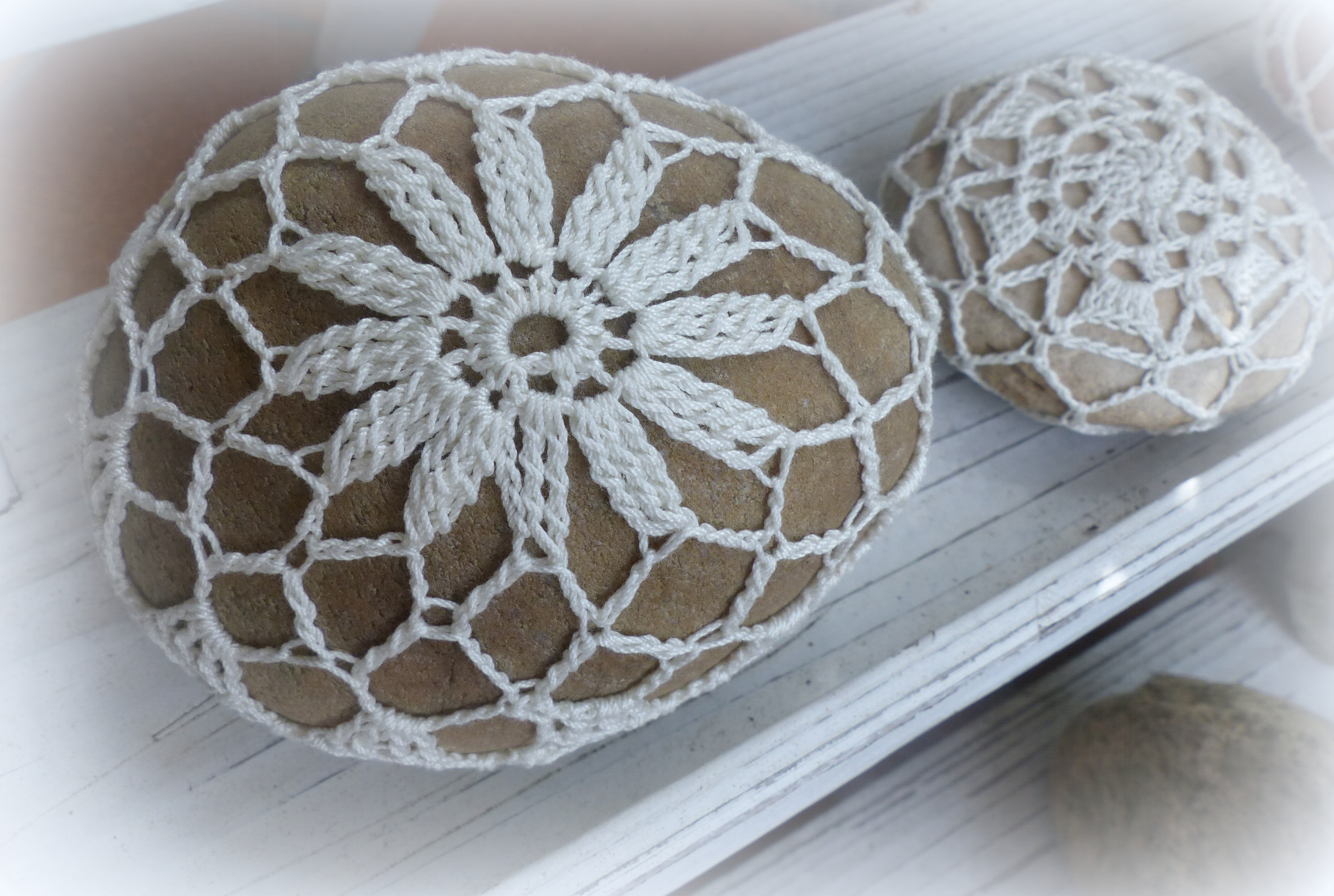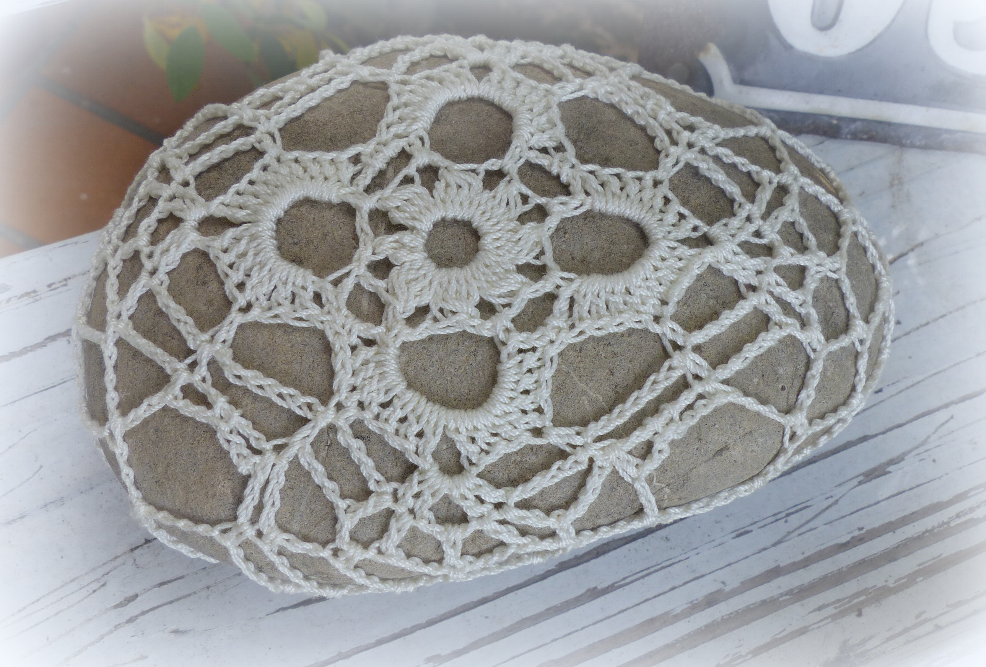 Wow, die umhäkelten Steine sehen ja super hübsch aus, Petra. Eine ganz tolle Idee.