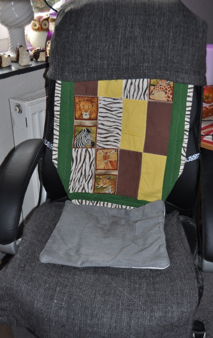 auf die Idee diese Wandbehänge anderweitig zu verwenden bin ich durch die viele Upcyling Beiträge gekommen, denn zum aufhängen war der *Sonntag* wie wor sagen weg, da beide schon an die 20 jahre im gebrauch sind. Unsere TV-Stühle brauchten aber ein ein neues *Kleid`* . also ausgemessen und geschaut ob beide passen und dann umgearbeitet für Stuhlhussen, denn dafür sind die Teile immer noch gut.