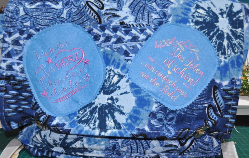 ... nachempfunden nach meiner ersten Schultasche, vergangene Woche genäht und heute noch die Klappe gepimpt, Schnitt hazze ich keinen, das ging wiedermal so aus dem Kopf raus :-)