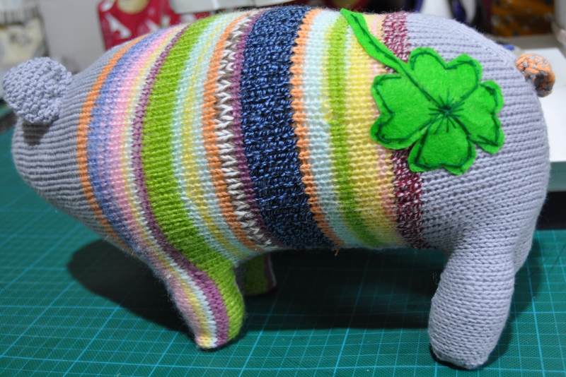 fürs Enkele. Sie sah am We das Schweinderl das ich für ihre Patin gestrickt hatte,( hab dem Schweinderl nämlich noch ein Kleeblatt auf den Schinken genäht, denn sie braucht zur Zeit sehr viel Glück.)