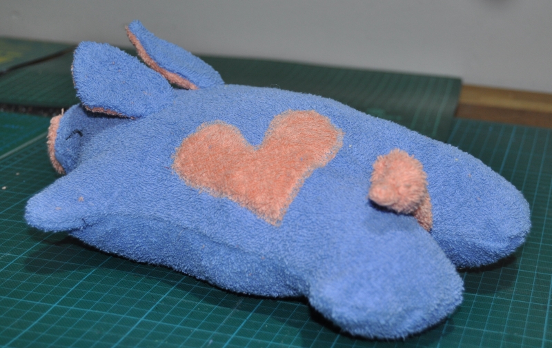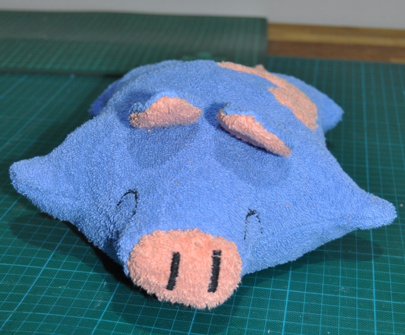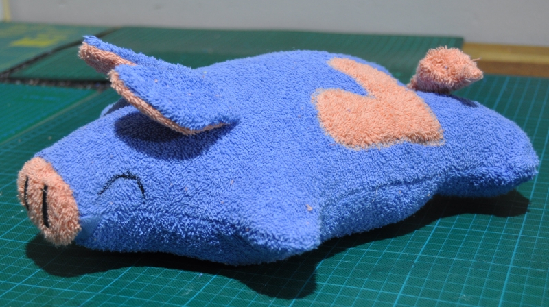 hab alte Handtücher recycelt und ein Schweinchenkissen fürs Enkele genäht