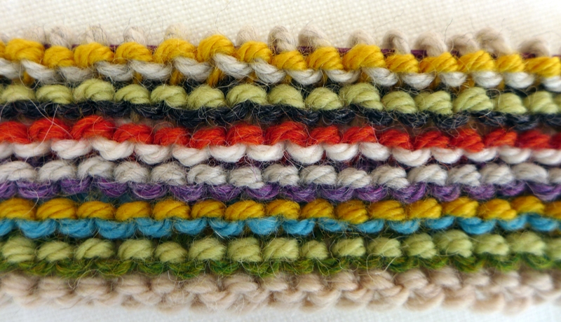 Jetzt arbeite ich an 2 Projekten. Eines zum Entspannen für abends beim Fernsehen. Es wird eine Decke aus der ertauschten Kiste Drops-Wolle. Hier ein kleiner Ausschnitt ...
