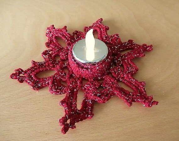 Für einen solchen sternenförmigen Teelichthalter brauchst du nur etwa 10 g Baumwollgarn. Ein Knäuel von 50 g reicht also für 5 Teelichthalter. Und damit hast du schon eine wunderbare, stimmungsvolle Dekoration für deinen Weihnachtstisch.