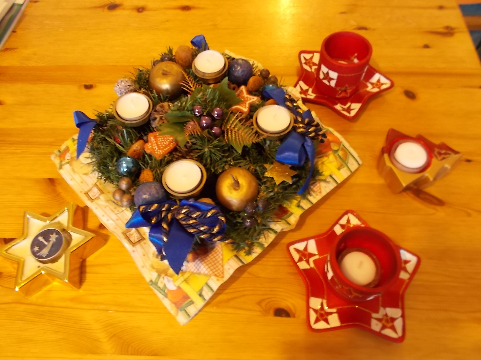 gerade habe ich meinen Adventskranz fertiggebastelt und dachte mir, es wäre doch schön, wenn wir unsere kreativen Ideen dazu zusammentragen. Wer also Lust hat, seinen zu zeigen und ein paar Worte dazu zu schreiben, wir würden uns alle darüber freuen. Besonders die Unschlüssigen bekämen vielleicht noch die eine oder andere Anregung.