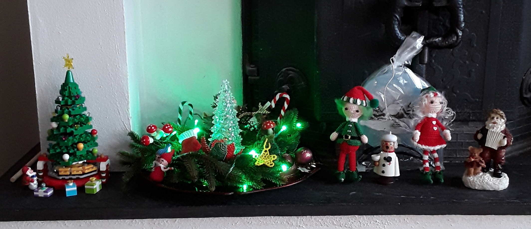 Da ich keine Kerzen gekauft habe, habe ich mich diesmal für 6h-Teelichter in kleinen Gläsern entschieden. Um die Gläser habe ich Schrumpfbandfolie (Lablanche) geschrumpft. Wenn die Lichter brennen, sieht man das Muster der sehr schön. Ein Bild vom beleuchteten Glas liefere ich nach dem 1. Advent nach :-)