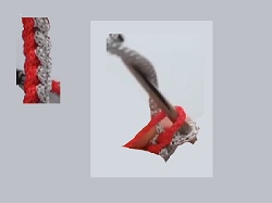 Die zweite LM auf die Nadel, ,diese LM häkeln (es sind nun 2 LM auf der Nadel) , die dritte LM auf die Nadel und nur diese mit einer LM häkeln. (es sind nun wieder 3 LM auf der Nadel)*
