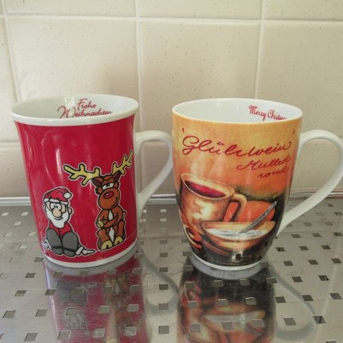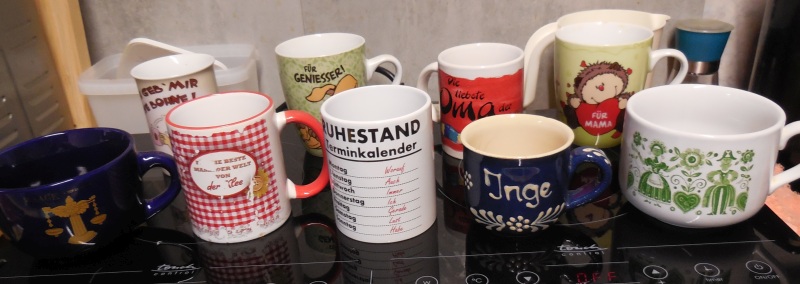 Unsere Tassensammlung ist wirklich beachtlich, hab ich heute beim Fotografieren gemerkt. Mein Mann hat ja auch so nen Tassentick und es gibt einige davon, die mussten wir unbedingt mitnehmen. Vor allem bei den Weihnachtstassen war das so.