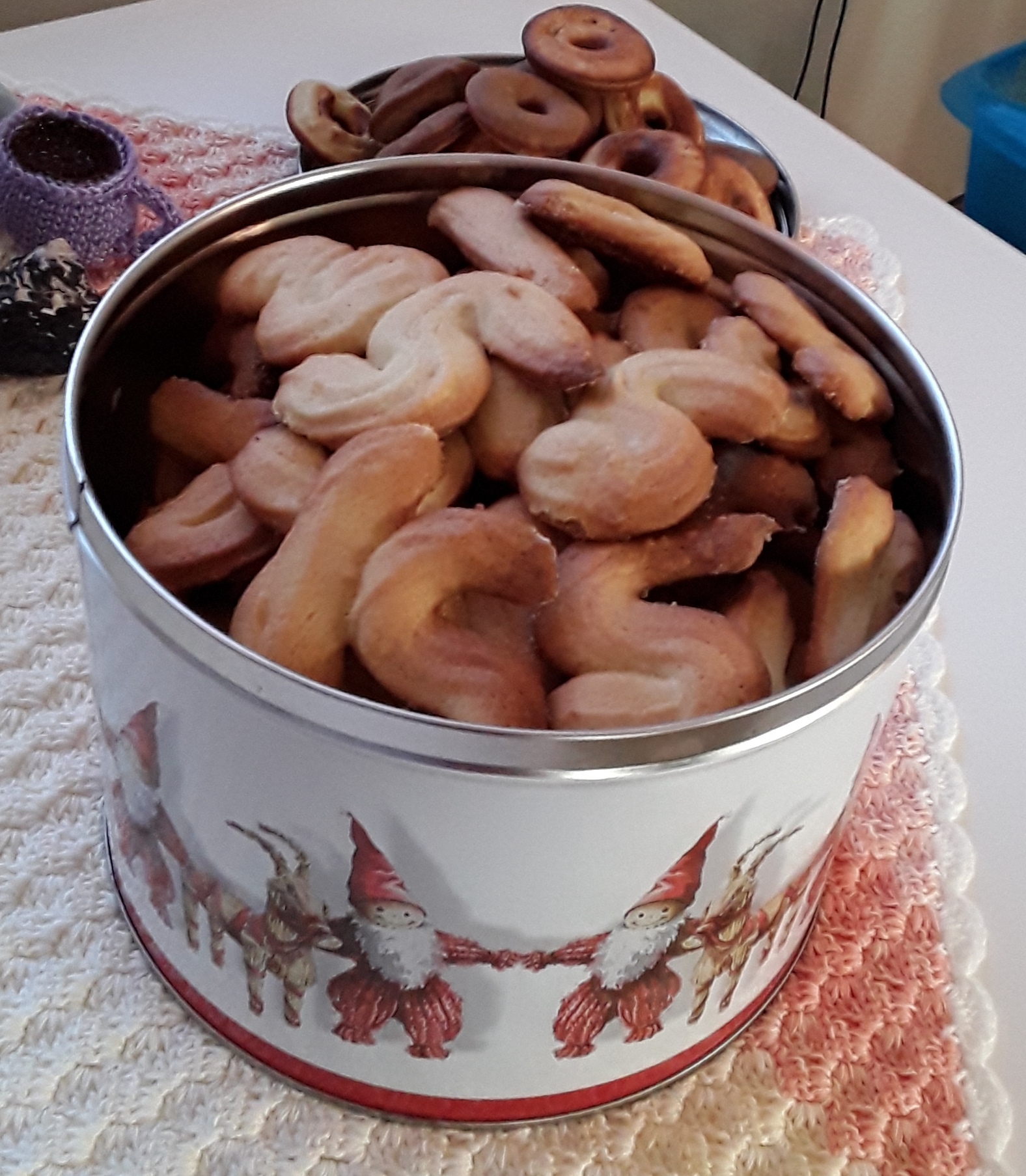 so der erste Schwung ist gebacken, hab Haselnussmakronen, Buttergebäck und Elisenlebkuchen gebacken,