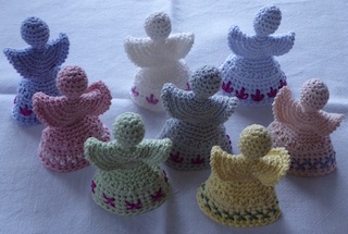 Meine Engelschar muss noch ein wenig anwachsen. Die ersten acht (Bild) sind gestern davon geflattert, drei stehen schon wieder bereit. Es sollen aber noch ein paar mehr werden.