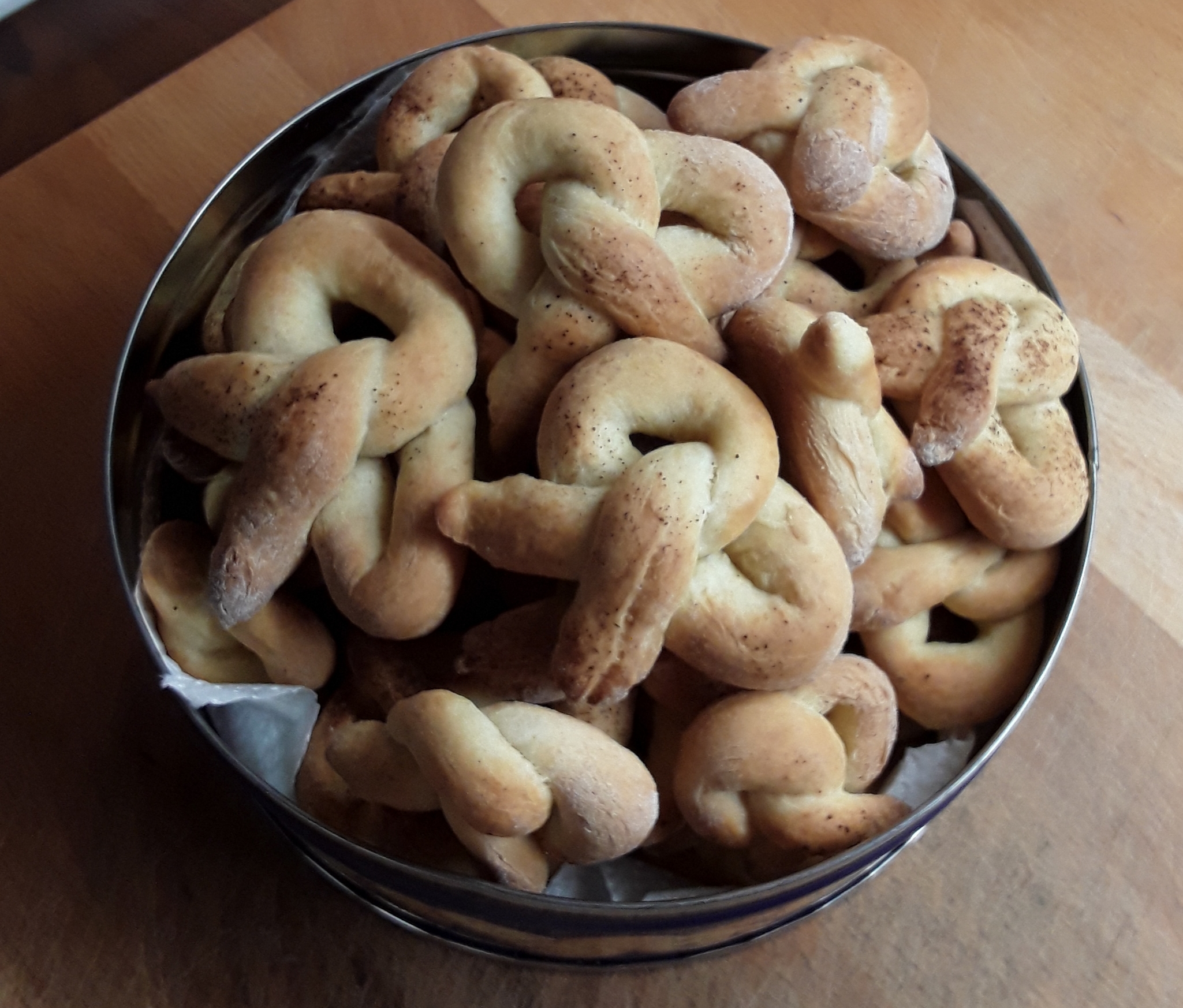 Ich habe wieder mal gebacken. Ein Rezept ausprobiert. Quarkbrezeln mit Zimt bestreut. Gibts dann zum Kaffee. Habe noch nicht probiert, sind noch warm. Habe den Quark-Hefeteig genommen.