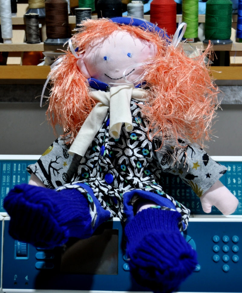 meine erste selber genähte Stoffpuppe, es ging einfacher als ich dachte und machte großen Spass, morgen will ich eine aus Puppenjersey nähen