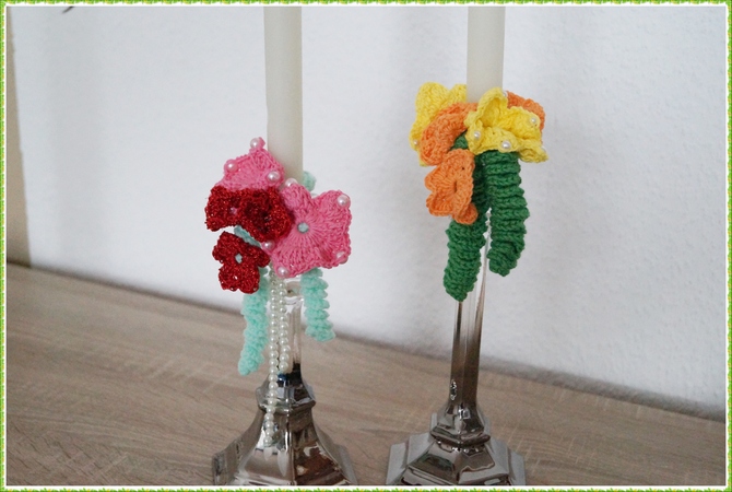 Einige werden sicherlich die Blüte von Ina erkennen, die ich ein wenig abgewandelt habe und die dann auf eine Stabkerze als Ring passt.
