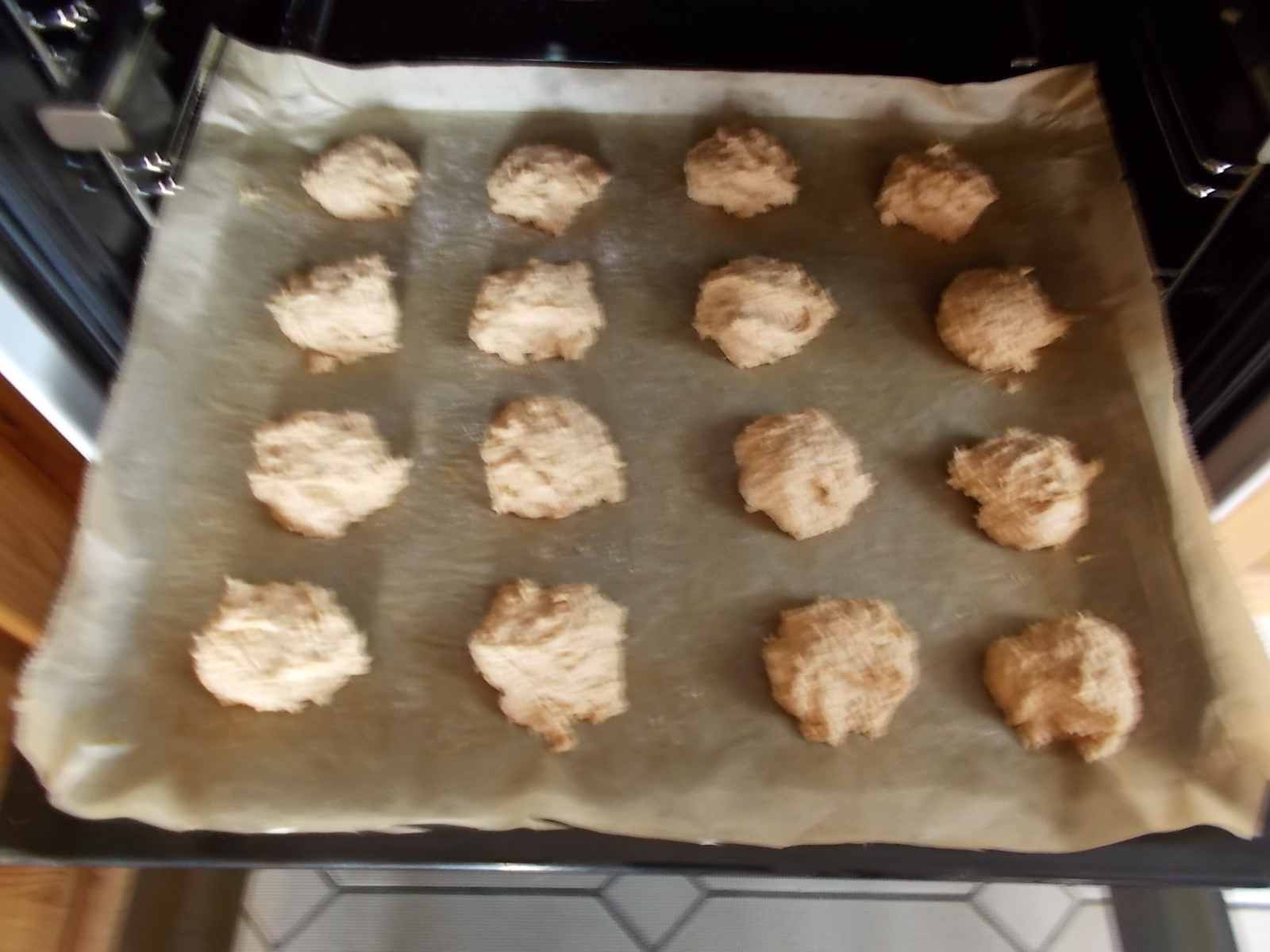 Mit zwei Teelöffel nun kleine Häufchen aufs Blech setzen.