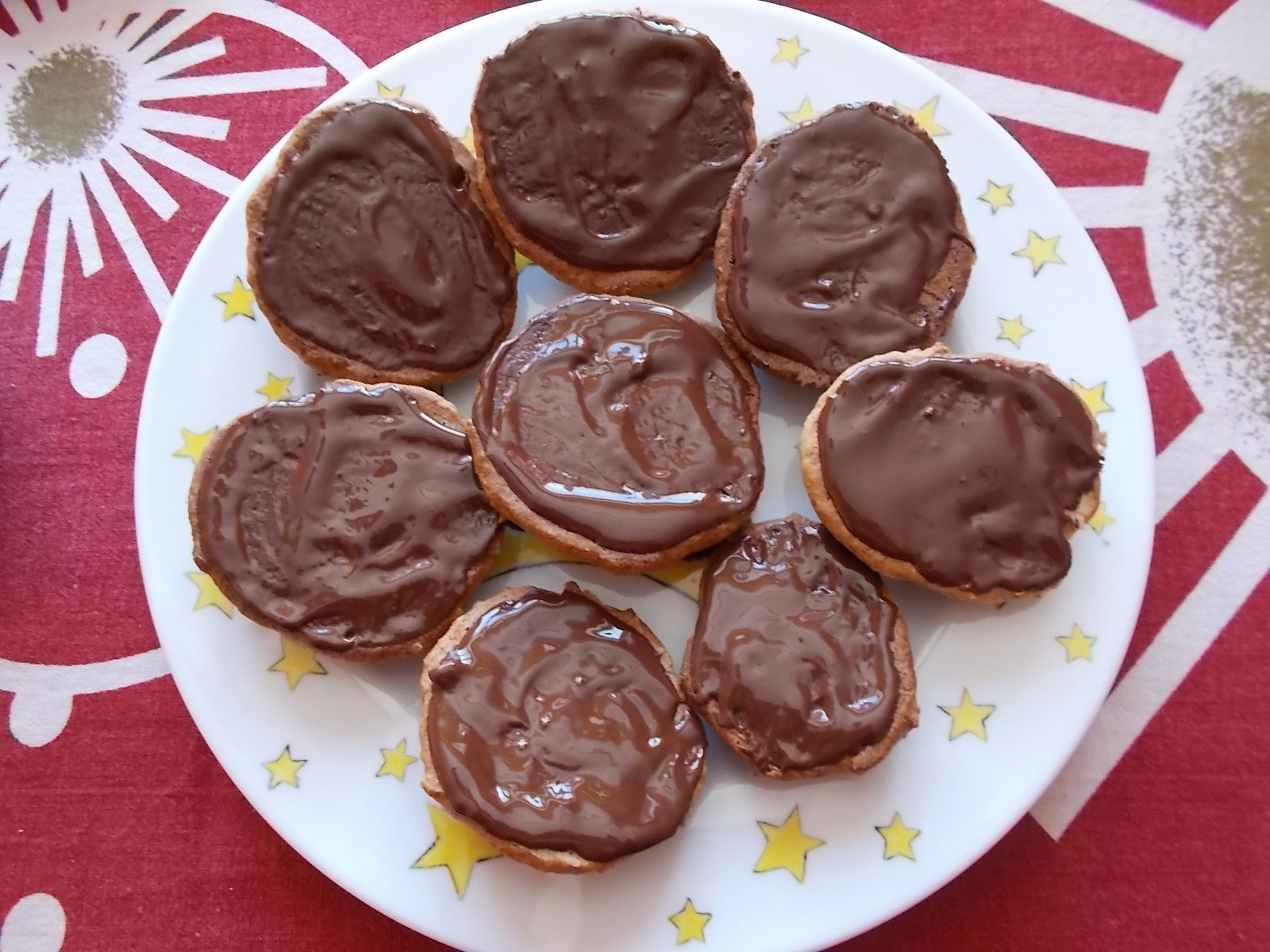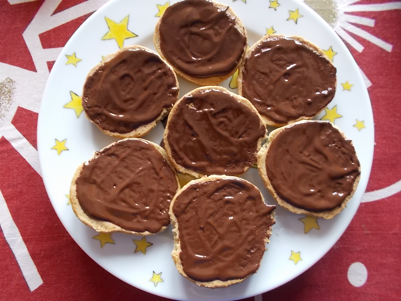 Nach dem Backen dann mit Kuvertüre bestreichen.